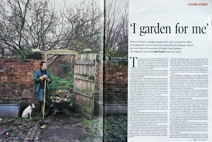 So why am I writing this? Well, because it gives me an opportunity to wheel out an interview — a cover story — that I did for the Irish Times with Monty Don in 2003. It was during his first season on his previous stint on the show. I liked the article that I wrote, but after publication it disappeared forever, as the magazine section of the Irish Times was not archived on the internet at that time. So, I thought I might revive it here. Why not? If Monty can come back to haunt us years later, then why not my much-slaved-over interview?