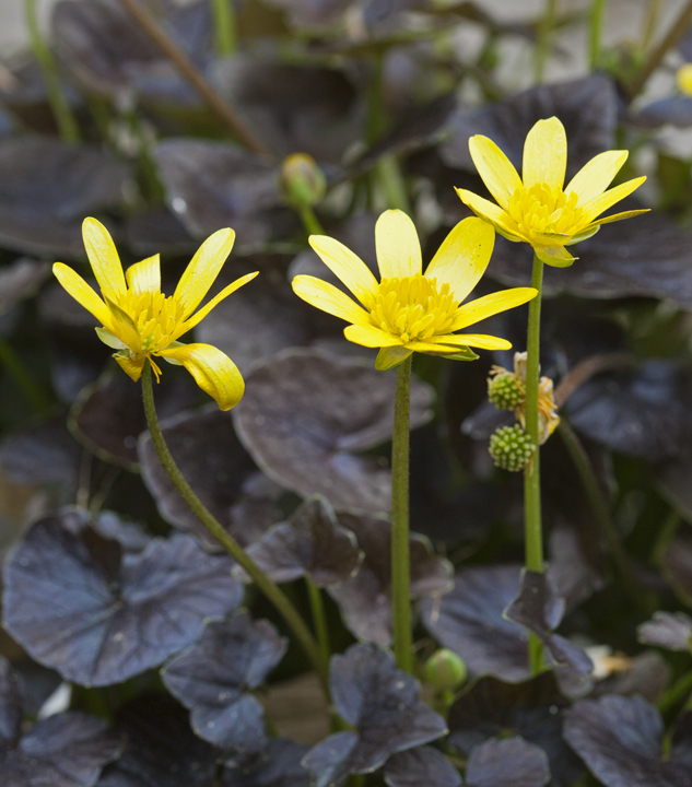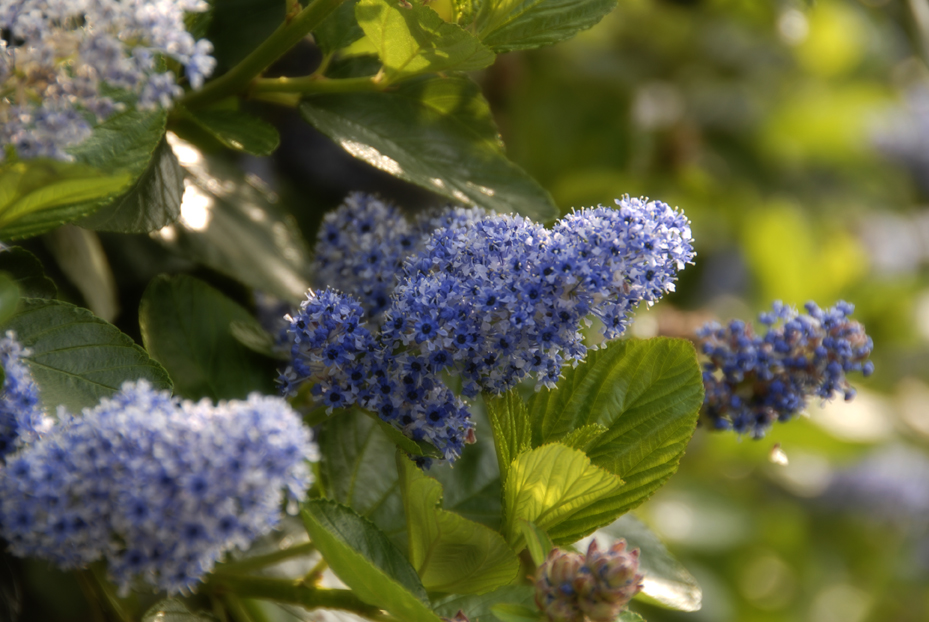 Many plants that normally bloom in mid or late spring are already flowering. Among them is the little bronze-leaved celandine, Ranunculus ficaria ‘Brazen Hussy’, discovered in an English wood by the late Christoper Lloyd. And, on our boundary, the evergreen Ceanothus ‘Trewithen Blue’ has been blooming for months. Usually it takes a break in winter before throwing its energy into a proper late-spring display.