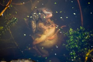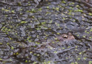 So, I’m hanging up my frog-shooting camera until next year, when I’ll probably try again. My best bit of spawnography yet was taken two springs ago. Here it is, an uncommonly busy bundle of common frogs.